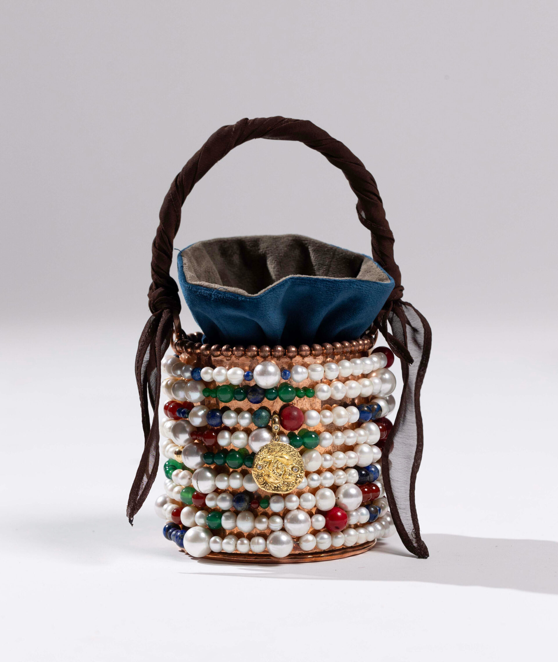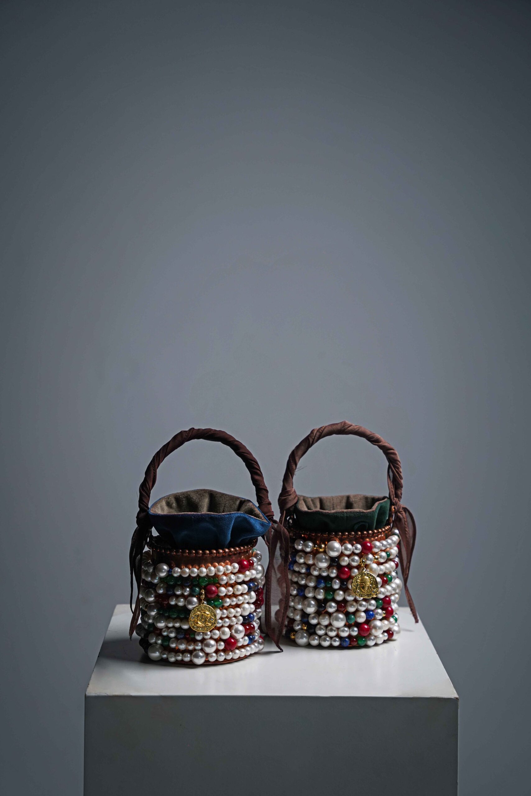Material:Captivating aventurine, tiger’s eye, coral, azurite, fire jasper, and natural pearl and a Crafted from 18-karat gold, each piece contains over 10 grams of pure gold, shaped into a golden sphere and a zodiac-inspired pendant, uniquely designed for each bag. Unique edition