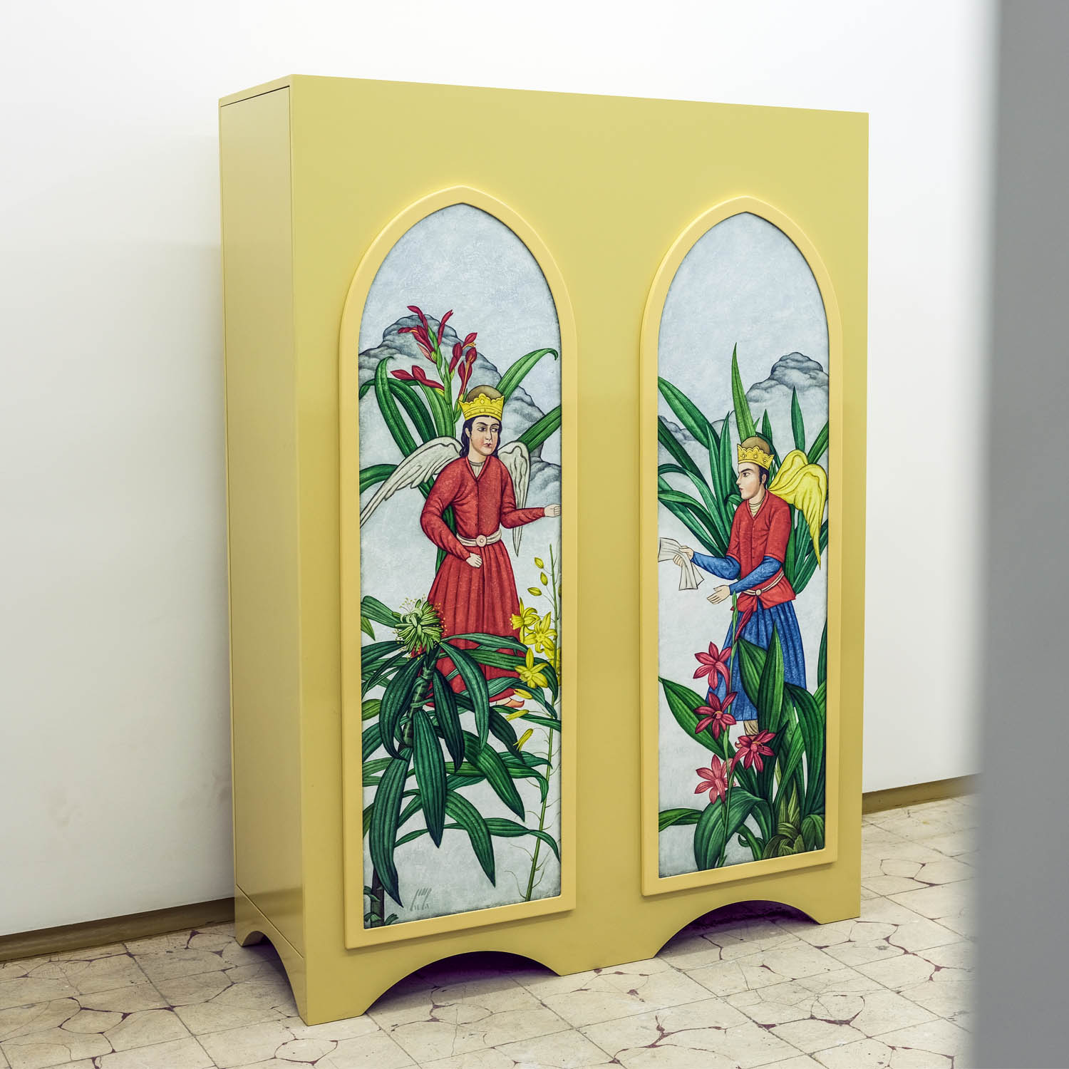 Cabinet: Polyurethane color on raw MDF – 170×120×50cmPainting: Acrylic and Oil on panel – 124×40cm