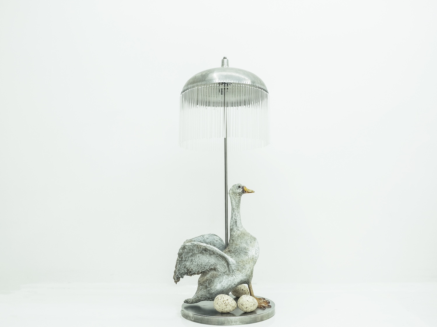 Oil color on papier mache, Glass, metal